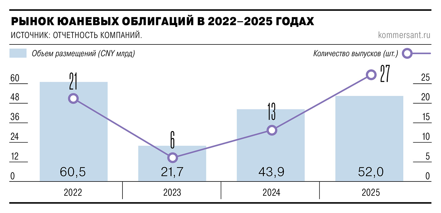 Выйти из полноэкранного режима Развернуть на весь экран Фото: Александр Казаков, Коммерсантъ Фото: Александр Казаков, Коммерсантъ 2 декабря Минфин закрыл книгу заявок по двум выпускам юаневых облигаций. Объем выпуска с погашением в феврале 2029 года составил 12 млрд CNY, с погашением в июне 2033 года — 8 млрд CNY. При этом эмитент заметно снизил стоимость привлечения: по короткой бумаге с первоначальных 6,25–6,5% до 6% годовых, по длинной бумаге — с 7,5% до 7% годовых. Техническое размещение на Московской бирже состоится 8 декабря. По данным источника “Ъ” на финансовом рынке, суммарный спрос на оба выпуска превысил 30 млрд CNY. Министр финансов Антон Силуанов, выступая на форуме ВТБ «Россия зовет!», также заявил, что спрос оказался выше ожиданий, причем, по его данным, был смещен в сторону более короткого выпуска. При этом интерес к выпуску проявил широкий круг инвесторов, от портфельных управляющих и банков до частных инвесторов. Как отмечает один из портфельных менеджеров, из-за высокого номинала в 10 тыс. юаней ограничивается доступность для частных инвесторов. Однако для состоятельных клиентов и тех, кто держит сбережения в юанях, это может стать альтернативой валютному депозиту. «Не было разве что НПФ, которые не могут брать на себя валютный риск»,— отмечает собеседник “Ъ” на долговом рынке. «Это первый суверенный валютный выпуск облигаций за последние пять лет, а также его срочность превышает доступные выпуски корпоративных бумаг»,— указывает один из портфельных управляющих. Поддержало интерес инвесторов предстоящее на этой неделе погашение замещающих облигаций Минфина объемом €1,35 млрд. Интерес вызван как уровнем ставки, так и уникальностью продукта. По оценке главного аналитика долговых рынков БК «Регион» Александра Ермака, установленные эмитентами купоны соответствуют доходности в размере 6,1% и 7,12% годовых, что предполагает премию к справедливому уровню в 50–60 базисных пунктов (б. п.). «В настоящее время юаневые облигации первого эшелона торгуются с доходностью 6,42–7,42% годовых при дюрации всего 0,9–1,9 года (при дюрации госбумаг соответственно 2,98 и 5,95 года)»,— отмечает эксперт. Планы размещения госбумаг, о которых стало известно месяц назад, пока не оказали заметного влияния на вторичный рынок юаневого корпоративного долга. По оценке господина Ермака, за последнюю неделю доходность таких бумаг изменилась разнонаправленно — от –55 б. п. до +78 б. п. Индекс средней доходности облигаций в юанях, рассчитываемый Московской биржей, в последние две недели оставался в диапазоне 6,2–7,1% годовых. Сумма размещения также была невелика, ранее некоторые эмитенты размещали облигации на 15–20 млрд CNY. Поэтому, как считает главный аналитик Совкомбанка Михаил Васильев, влияние на цены будет небольшое и краткосрочное. «Появление суверенного бенчмарка приведет к переоценке этого сегмента: доходности корпоративных выпусков могут вырасти, облигации — просесть в цене»,— считает инвестиционный стратег «ВТБ Мои инвестиции» Станислав Клещев. Выйти из полноэкранного режима Развернуть на весь экран Вместе с тем размещение юаневых госбумаг позволит снизить объем предложения рублевых ОФЗ, что потенциально снизит стоимость заимствований для бюджета, считают участники рынка. С начала года Минфин разместил на внутреннем рынке такие бумаги почти на 6,5 трлн ру