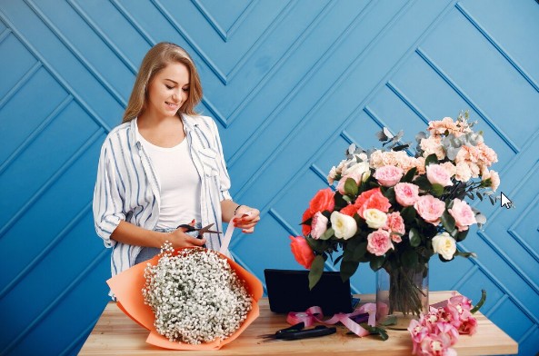 Квіти можуть бути використані як акцентний елемент або як частина загальної композиції. Наприклад, яскравий букет на нейтральному фоні приверне увагу та додасть жвавості інтер’єру. Квіти в тон інтер’єру створять атмосферу гармонії та спокою.