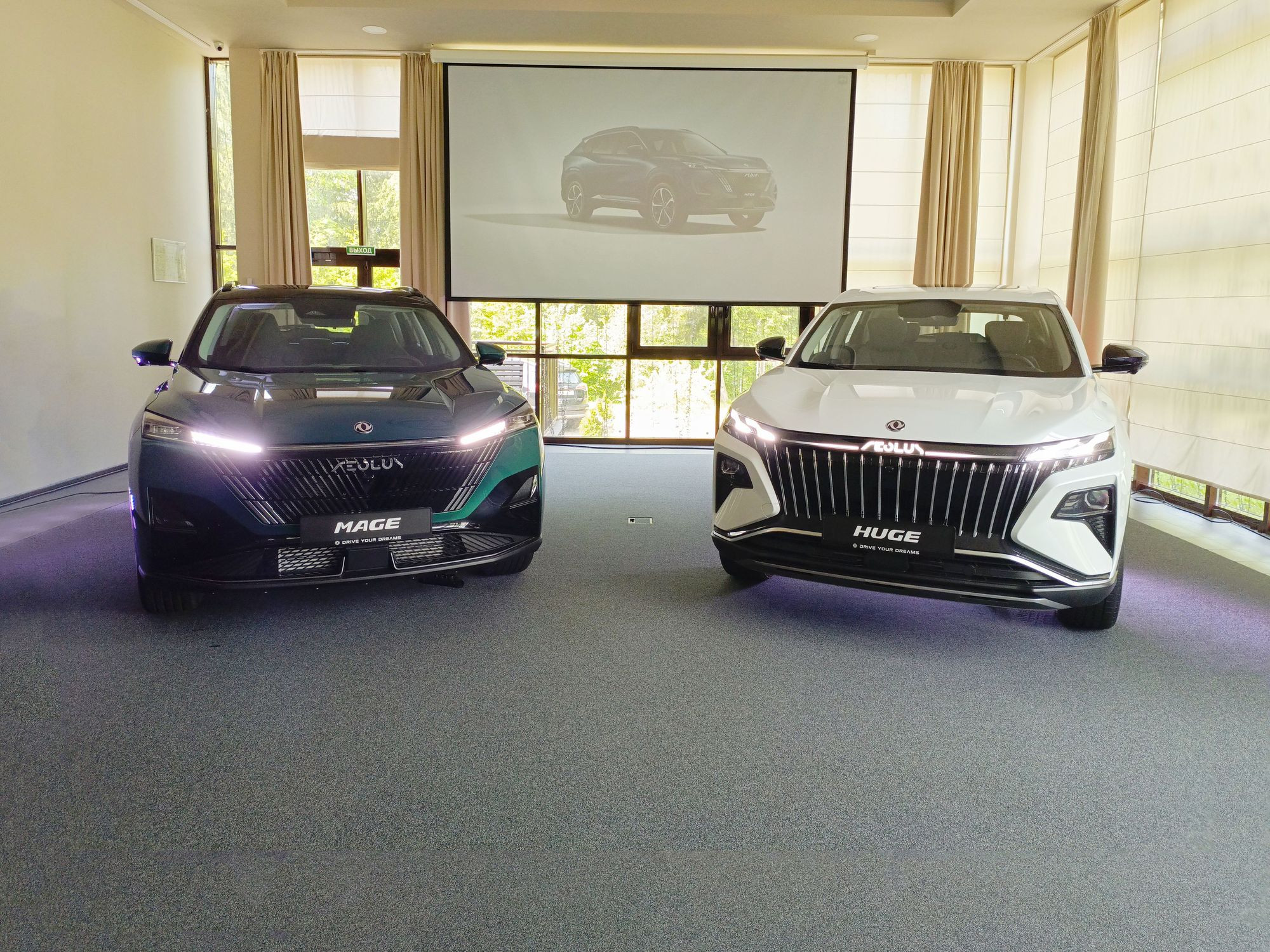 Обе модели не совсем новые, но примерно ровесники: Aeolus Haoji, ставший впоследствии Dongfeng Huge, – 2022 года рождения, а Aeolus Haohan, переквалифицировавшийся в Dongfeng Mage, – 2023 года. Кстати, сразу проясняется, почему автомобили забрендированы еще и этой светящейся надписью Aeolus. Видимо, китайские партнеры решили название у нас поменять и при этом не отказываться от родовых признаков. Правда, они упорно настаивают, чтобы никаких «аеолусов» в именовании модели в России не использовали. То есть это просто красивая надпись. Лепота!