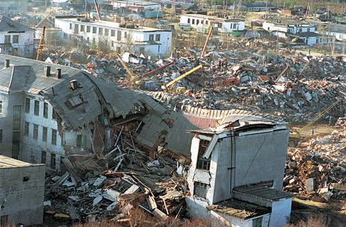 Тектонический разлом длиной 80 км обрушил все 17 пятиэтажек Нефтегорска, порвал железнодорожные пути, мосты и линии связи, вздыбил даже объездные дороги. Техническая готовность державы к такому повороту событий была такова, что страна даже не заметила самого страшного в новейшей истории землетрясения. А когда выжившие жители вырвались в районный центр Оху, им и поверили-то не сразу: как, дескать, за 17 секунд может исчезнуть целый город?